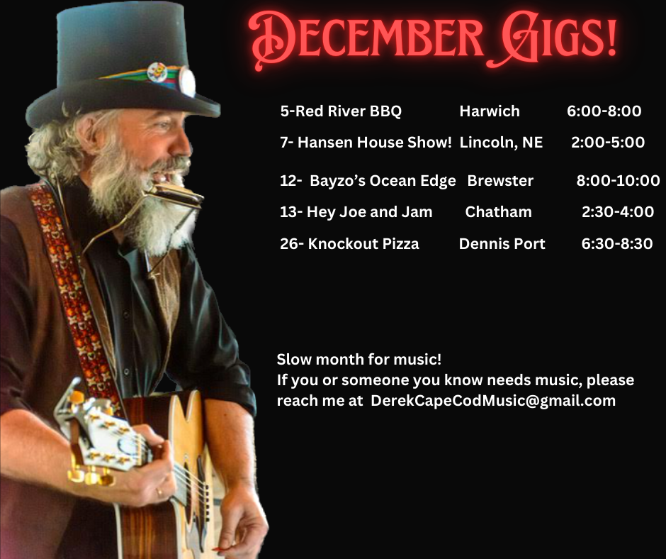 Derek’s is a voice that recalls the classic songwriters of the 1970’s. Obvious comparisons to Cat Stevens, Van Morrison and James Taylor come easily, but in addition, he brings an alternative sound reminding one of Wilco’s Jeff Tweedy or Sufjan Stevens. Born among the cornfields of the Great Plains of Nebraska, Derek began playing and writing songs after receiving his first guitar in 1986. Since then, he has travelled widely in the lower 48 playing his original songs and favorite cover versions for audiences from California to New York. As of 2022 he has called Massachusetts his home.